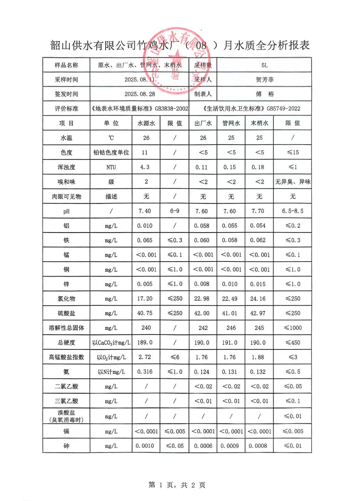 韶山供水有限公司竹鸡水厂(09)月水质全分析报表