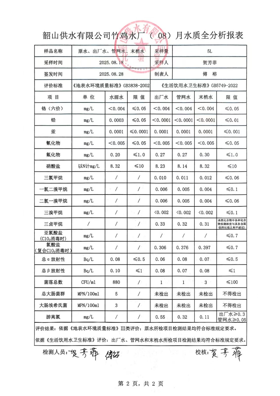 韶山供水有限公司竹鸡水厂(08)月水质全分析报表