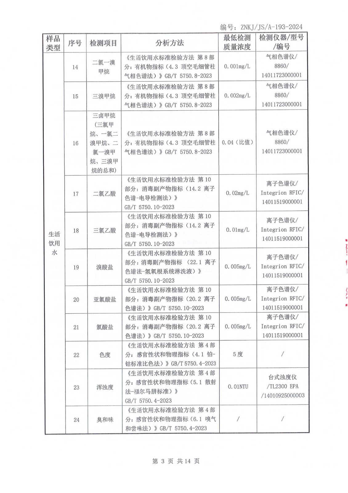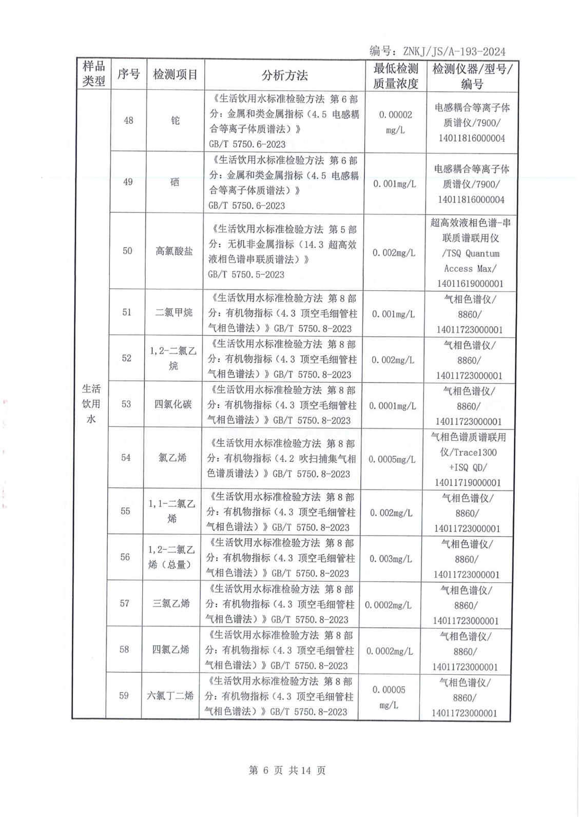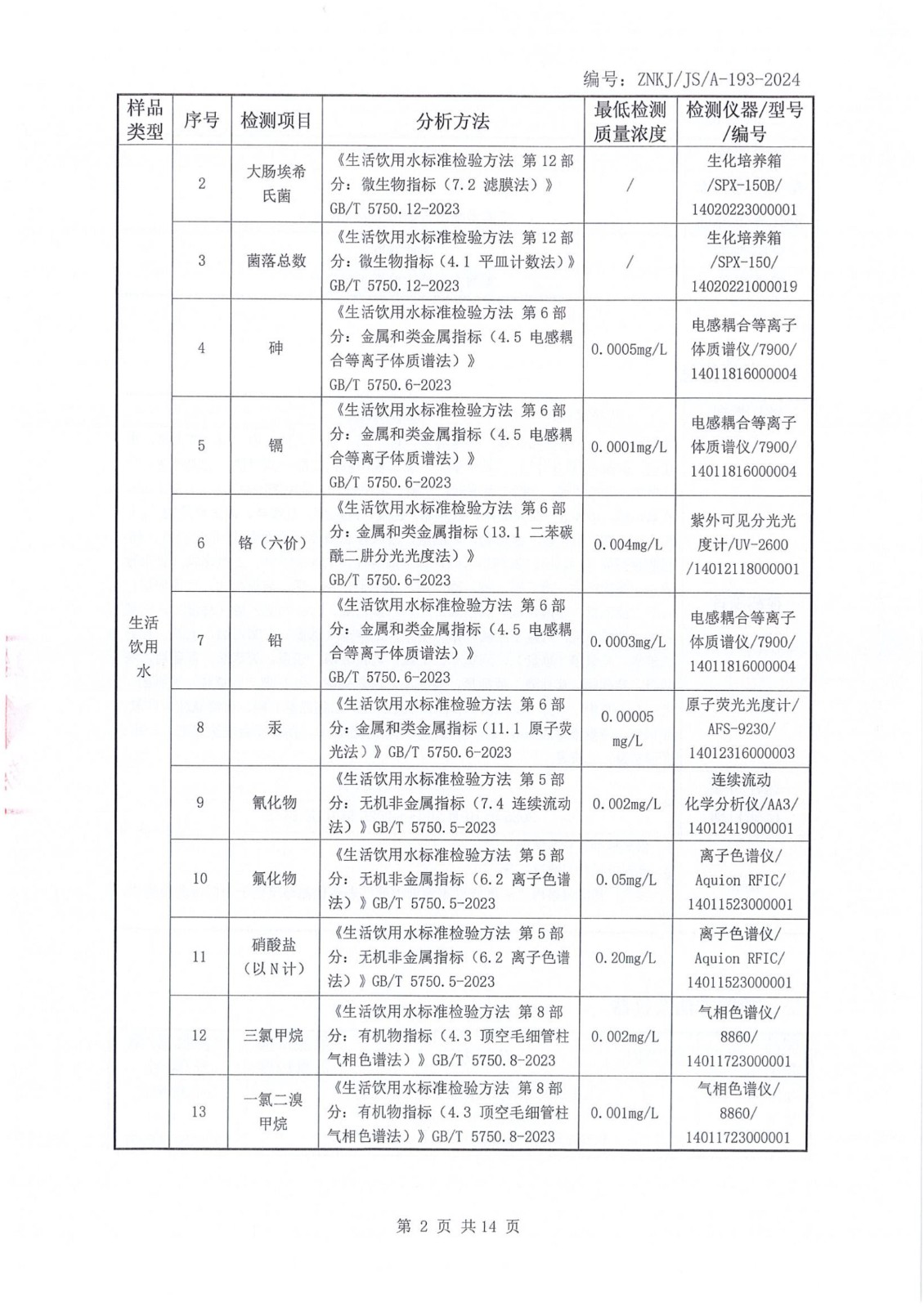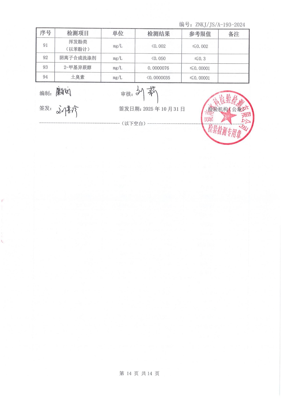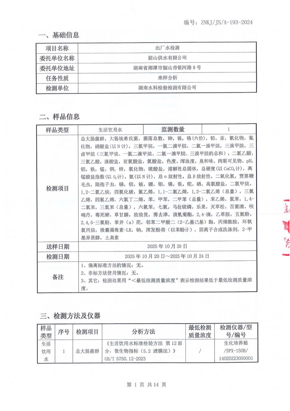 韶山供水有限公司竹鸡水厂2025年下半年出厂水送检检测报告(湖南水科检验检测有限公司)